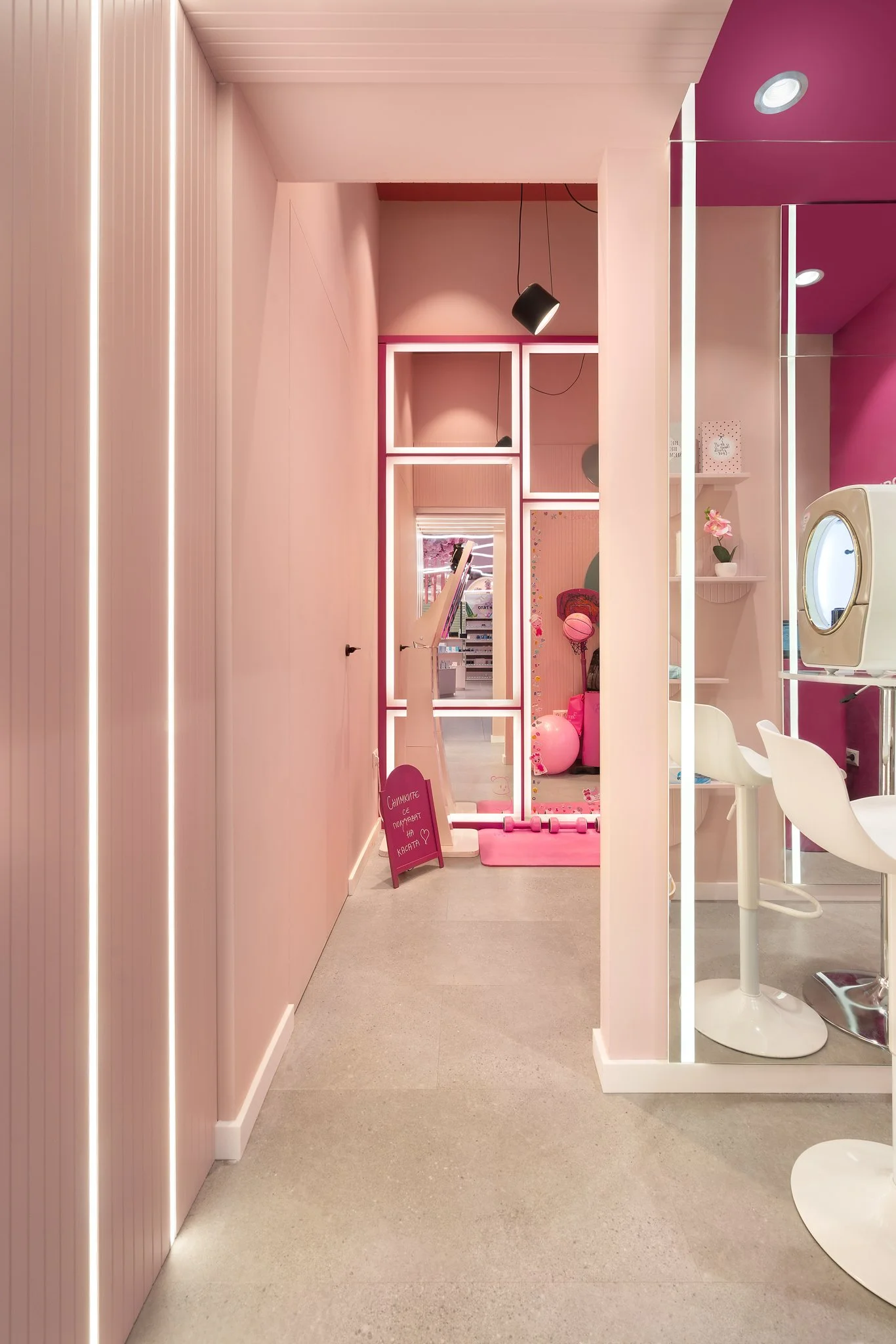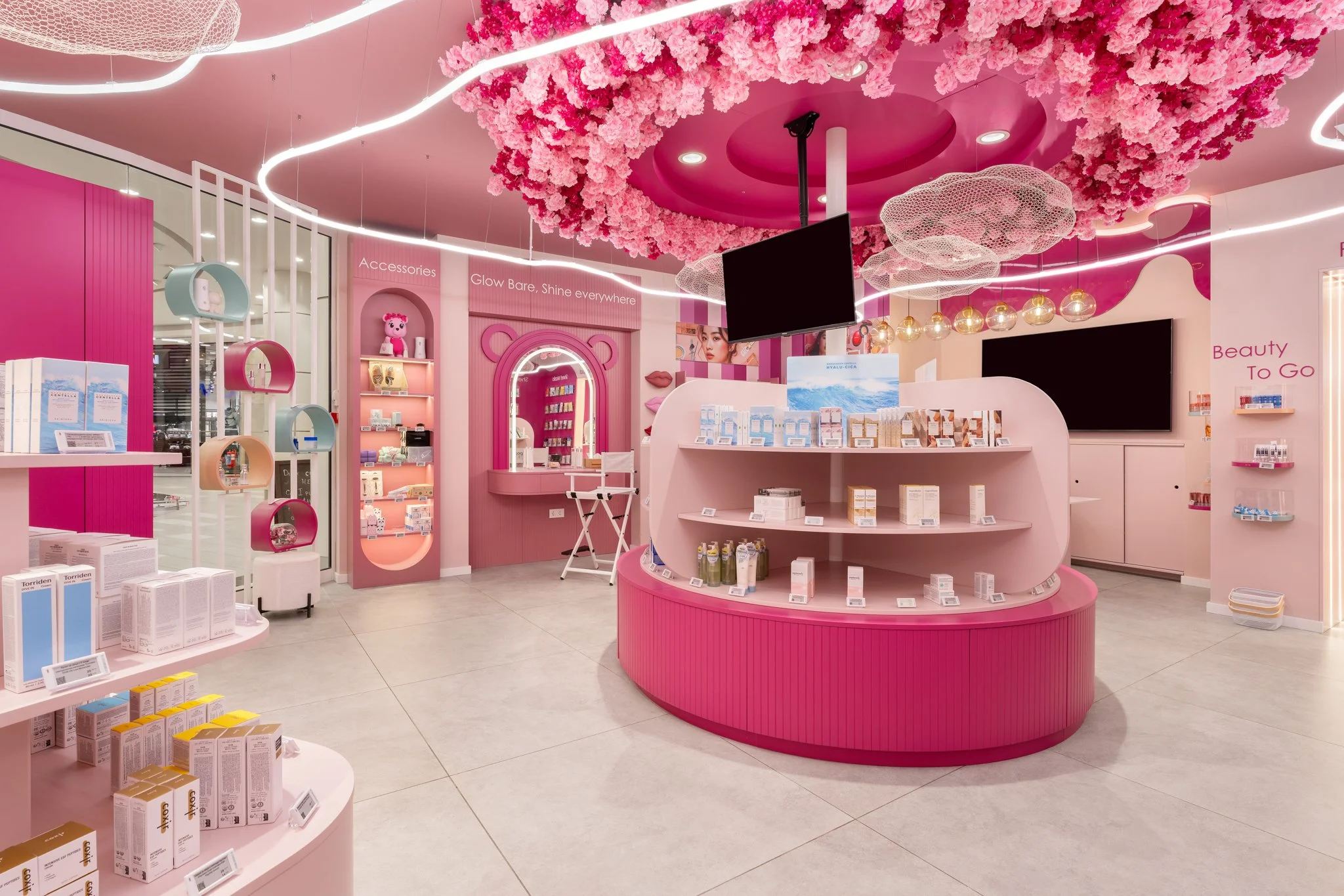Проектът пресъздава съвременната K-beauty естетика чрез чисти линии, ясно структурирани пространства и силно разпознаваема визуална идентичност. Основният герой тук е розовият цвят – използван в богата палитра от нюанси, от нежно пудрено до наситено фуксия, които създават усещане за игривост, лекота и модерност.