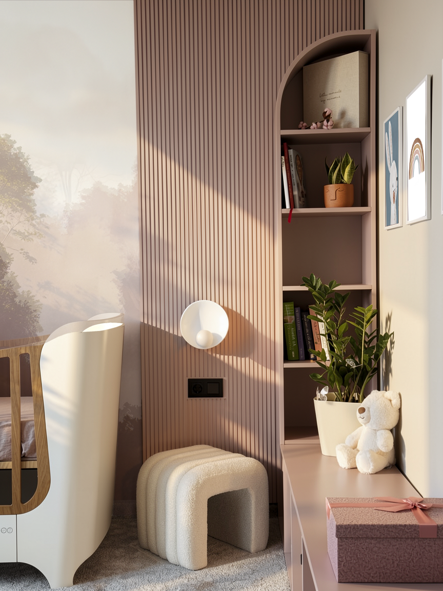 Резултатът е нежно, балансирано пространство – сигурен и красив свят, в който детето може да расте, играе и мечтае.